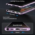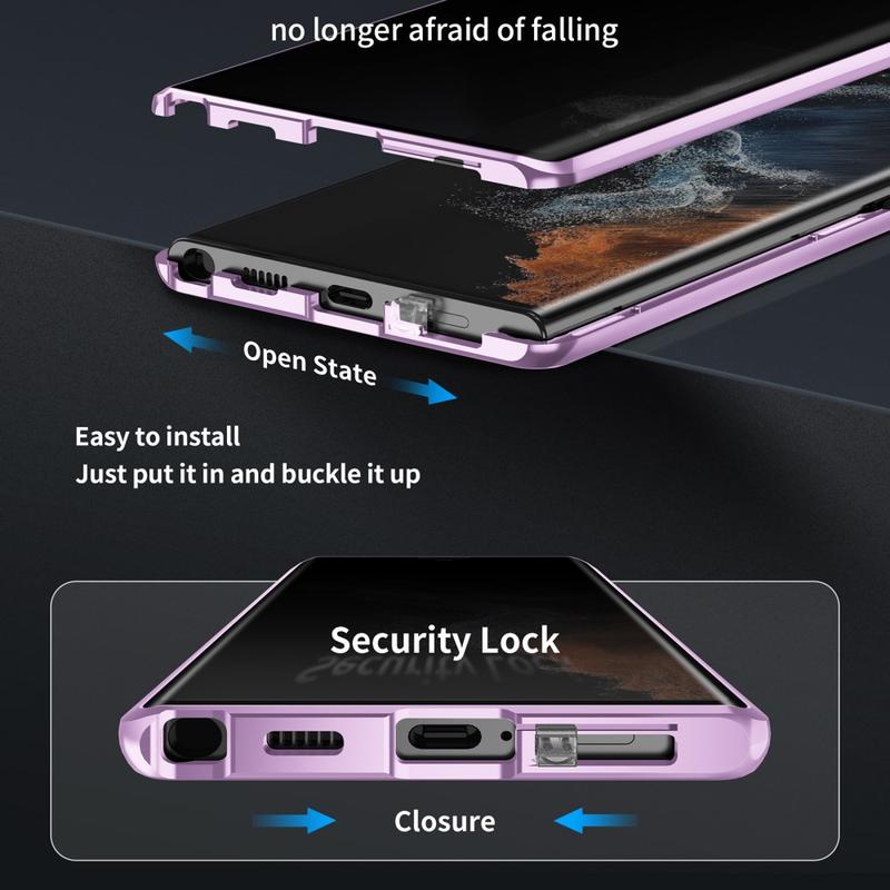 Tweedelig ontwerp biedt eenvoudige bevestiging en veilig slot dankzij magneten en gesp. Ingebouwd gehard glas aan de voorkant beschermt het scherm tegen krassen en stoten, het metalen frame aan de zijkant tegen stoten en vallen, terwijl mat composietmateriaal de achterkant van de Samsung Galaxy S23 Ultra 5G beschermt.