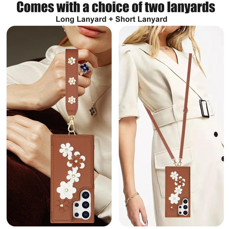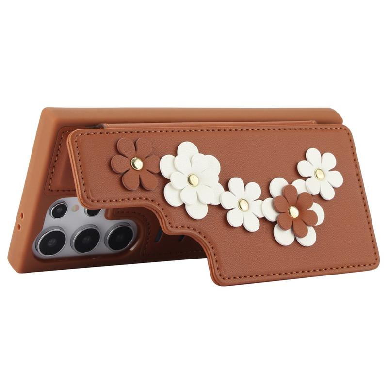 De Samsung Galaxy S24 Ultra Flower Decor Case is gemaakt van polyurethaan en TPU materialen en biedt duurzame bescherming. Het stijlvolle ontwerp is voorzien van bloemen op de achterkant van de hoes en de handband. Het bevat een kaartsleuf voor het opbergen van maximaal 4 essentiële kaarten, en de kaarthouder aan de achterkant kan ook worden gebruikt als kickstand voor meerdere kijkhoeken. De magnetische knop houdt de kaarten veilig opgeborgen, terwijl nauwkeurige uitsparingen volledige toegang tot alle knoppen en poorten bieden. Bescherm je telefoon tegen dagelijkse schade met deze handige hoes die wordt geleverd met een handriem en schouderriem om hem gemakkelijk mee te nemen.