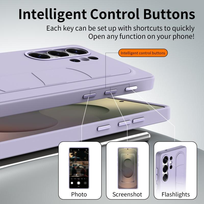 Slim Hybride Hoesje met Staande Grip voor Samsung Galaxy S24 Ultra - NFC Aanpasbare Sneltoetsen, Polsband Kickstand & Legering Camerabescherming