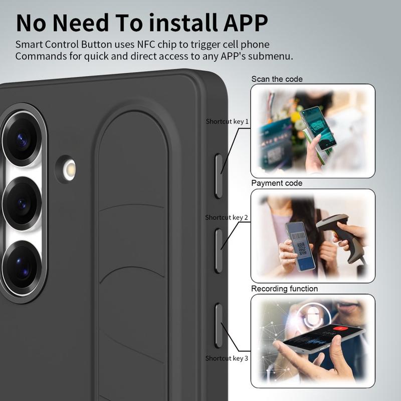 Deze slimme hybride hoes is uitgerust met drie intelligente NFC-knoppen waarmee je met één druk op de knop snel toegang krijgt tot apps als Camera, Zaklamp of Screenshot. Niet opladen, geen extra apps - gewoon eenvoudige, directe functionaliteit.