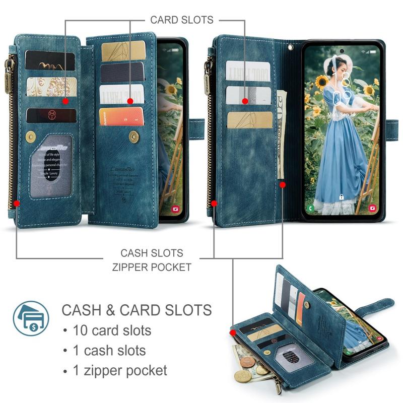 Het Caseme C30 multifunctionele portemonnee hoesje voor Samsung Galaxy S24 FE biedt uitzonderlijke all-round bescherming en een exclusief, verfijnd ontwerp. Dit elegante hoesje is gemaakt van premium polyurethaan, versterkt met een schokbestendige TPU binnenhoes die je Samsung Galaxy S24 FE perfect omsluit. Ondertussen is de Caseme C30 portemonnee hoes uitgebreid met tal van kaartsleuven, een groot geldvak binnen, en een ritsvak aan de buitenkant, allemaal beschermd door een veilige magnetische sluiting.