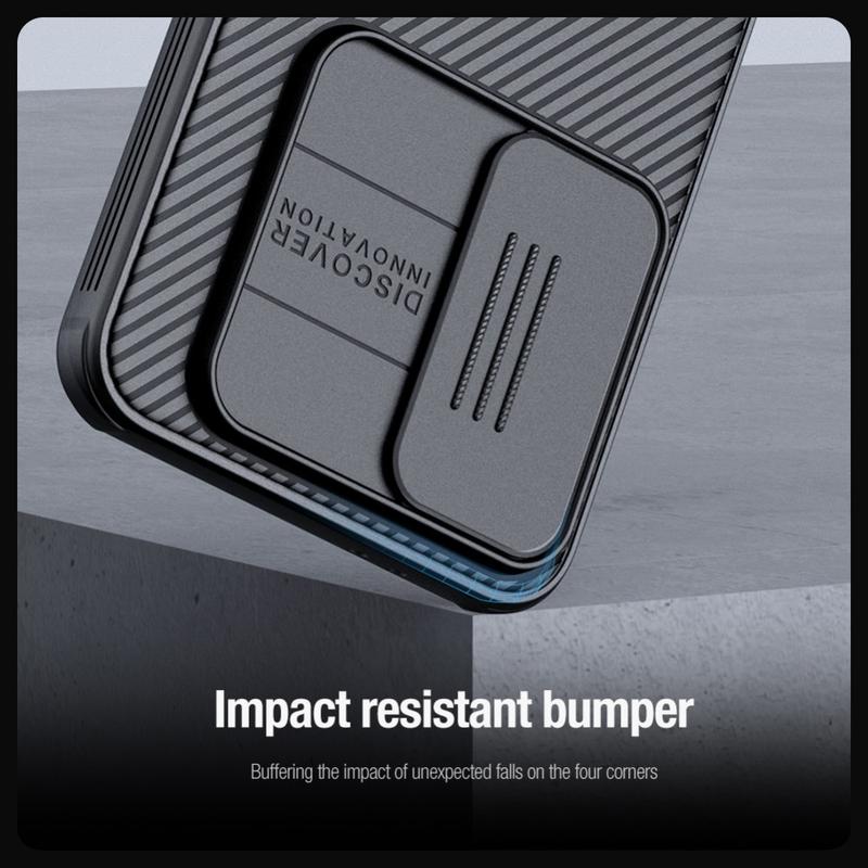 - Deze buitengewone Nillkin CamShield Prop hybride hoes is gemaakt van plastic en TPU-materialen