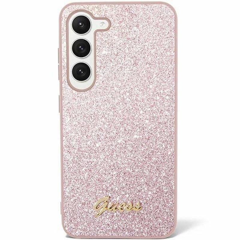 Guess Glitter Flakes Metal Logo Hybride Hoesje voor Samsung Galaxy S24