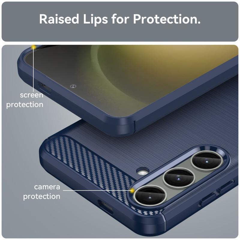 Het hoesje van geborsteld TPU beschermt je Samsung Galaxy S24+ voldoende en geeft het een geweldige stijl, dankzij het koolstofvezelpatroon op de achterkant. De case zorgt ook voor oververhitting bij gebruik van je Samsung Galaxy S24+, met zijn ontwerp voor warmteafvoer.
