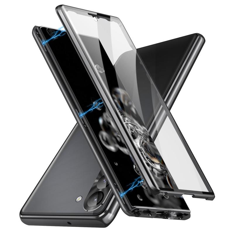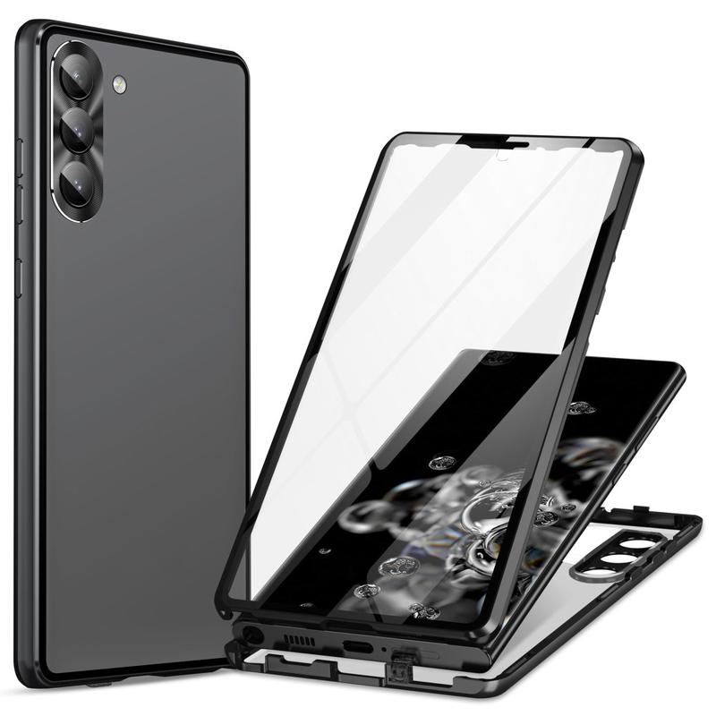 Bescherm uw Samsung Galaxy S24+ volledig tegen krassen, stoten en alledaagse schade. Deze hoes bevat een magnetisch metalen frame en gehard glas voor zowel de achterkant als de voorkant om je Samsung Galaxy S24+ rondom te beschermen.