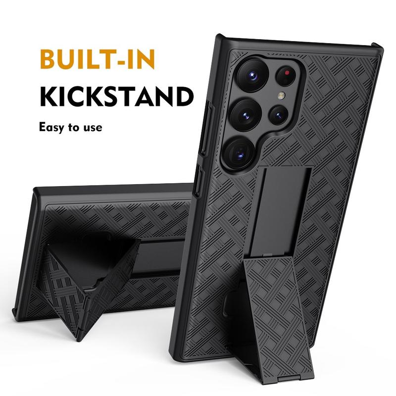 Met dit hoesje kunt u uw Samsung Galaxy S24 Ultra handsfree media en video's bekijken of lezen dankzij de ingebouwde standaard en biedt veiligheid en bescherming. Bovendien bevat de hoes een riemgesp-ontwerp waarmee u uw Samsung Galaxy S24 Ultra overal mee naartoe kunt nemen. Het uitschuifbare ontwerp zorgt voor volledige bescherming tegen alledaagse schade, maar belemmert de toegankelijkheid van uw apparaat niet.