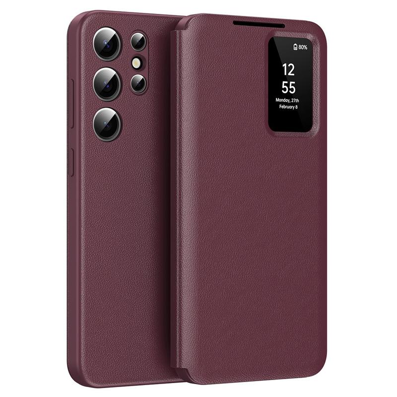 Upgrade je Samsung Galaxy S24 Ultra met deze Premium Leren Flip Cover, die luxe, bescherming en functionaliteit combineert in één elegant accessoire.