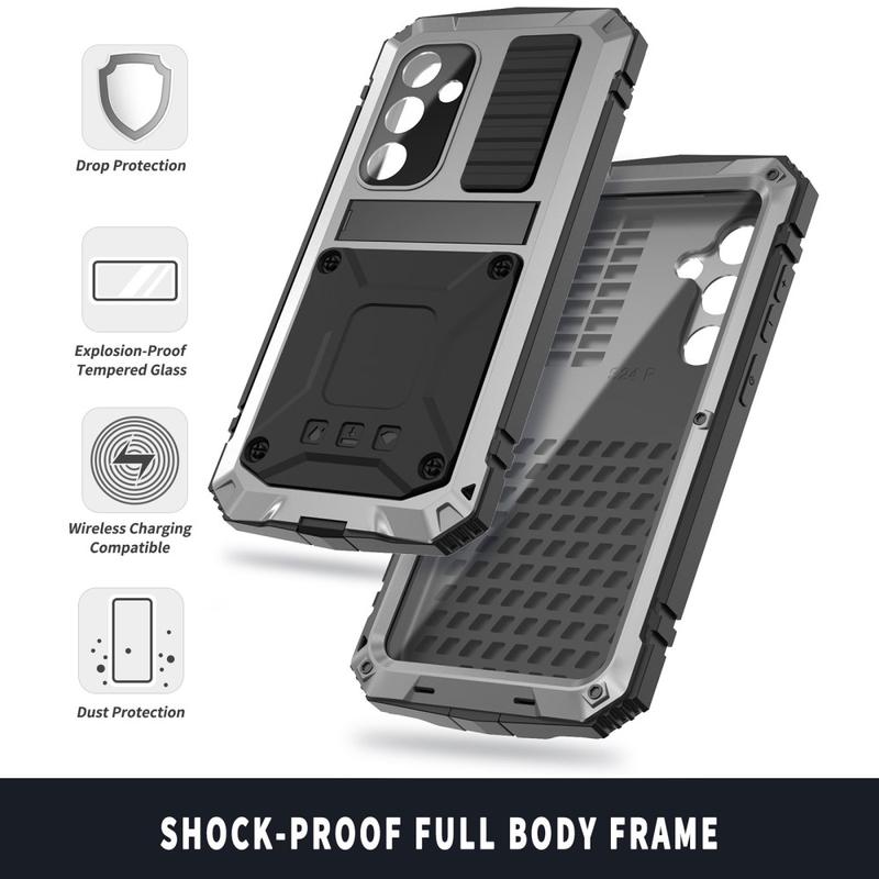 Ervaar ongeëvenaarde bescherming en functionaliteit met de R-Just Case voor Samsung Galaxy S25. Deze hybride case is gebouwd voor duurzaamheid en combineert PC, siliconen en metalen materialen voor uitgebreide bescherming tegen dagelijkse slijtage. Met zijn geïntegreerde kickstand en meegeleverde geharde glasfolie biedt deze case eersteklas functionaliteit zonder afbreuk te doen aan stijl. Ontworpen voor de moderne gebruiker, is het de ideale accessoire om je apparaat te beschermen met behoud van slanke esthetiek.