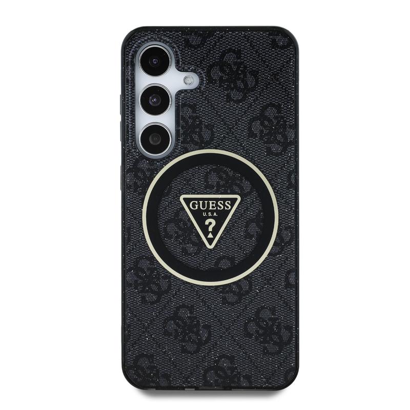 Guess 4G Glitter Triangle Buttons MagSafe hoesje voor Samsung Galaxy S25 - Stijlvolle bescherming met MagSafe compatibiliteit