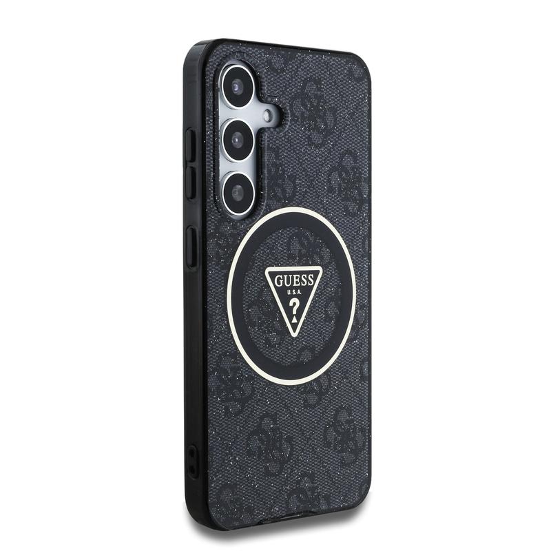 Guess 4G Glitter Triangle Buttons MagSafe hoesje voor Samsung Galaxy S25+ - Stijlvolle bescherming met MagSafe compatibiliteit