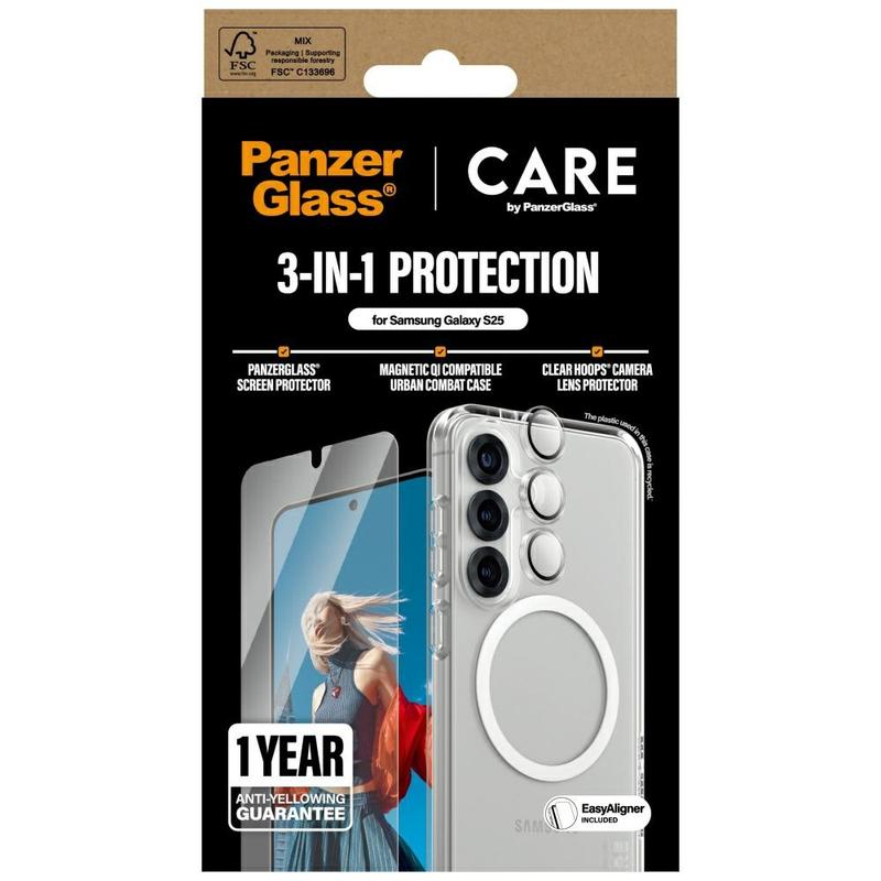Care by PanzerGlass Flagship 3-in-1-beschermingsbundel voor Samsung Galaxy S25 - MagSafe Urban Combat Case, Ultra-Wide Fit Gehard Glas Screen Protector & Hoops Camera Lens Protector