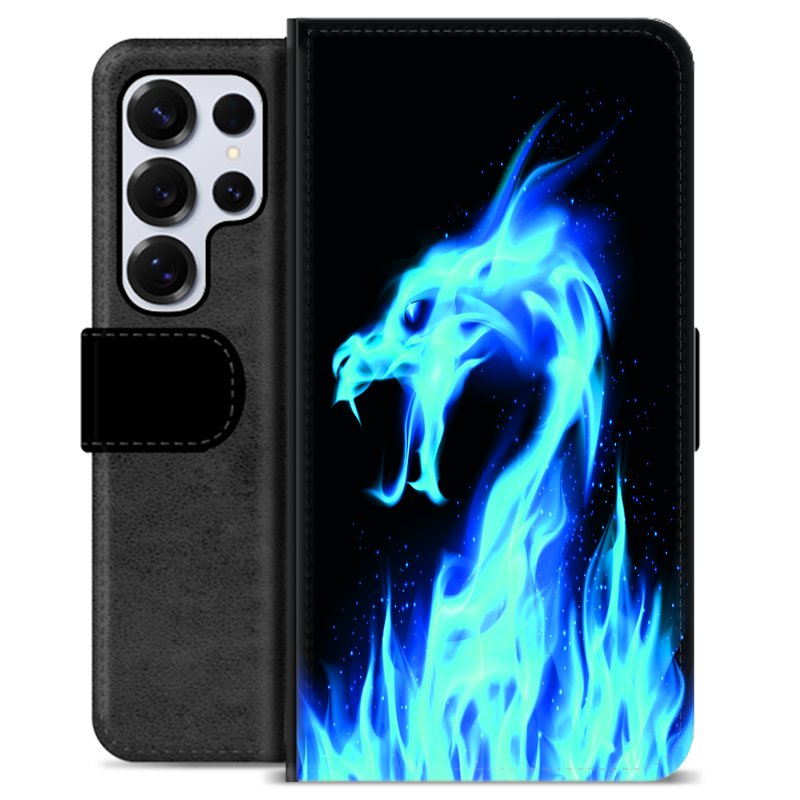 Samsung Galaxy S25 Ultra Premium Portemonnee Hoesje - Blauwe Vuurdraak