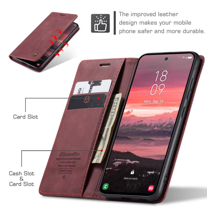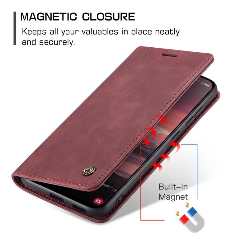 - Ingebouwde magneten houden de Caseme 013-serie portemonnee-etui gesloten