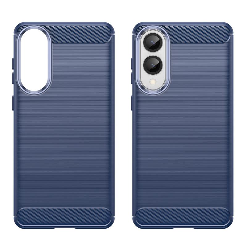 Samsung Galaxy S25 Edge Geborsteld TPU Hoesje - Koolstofvezel - Blauw