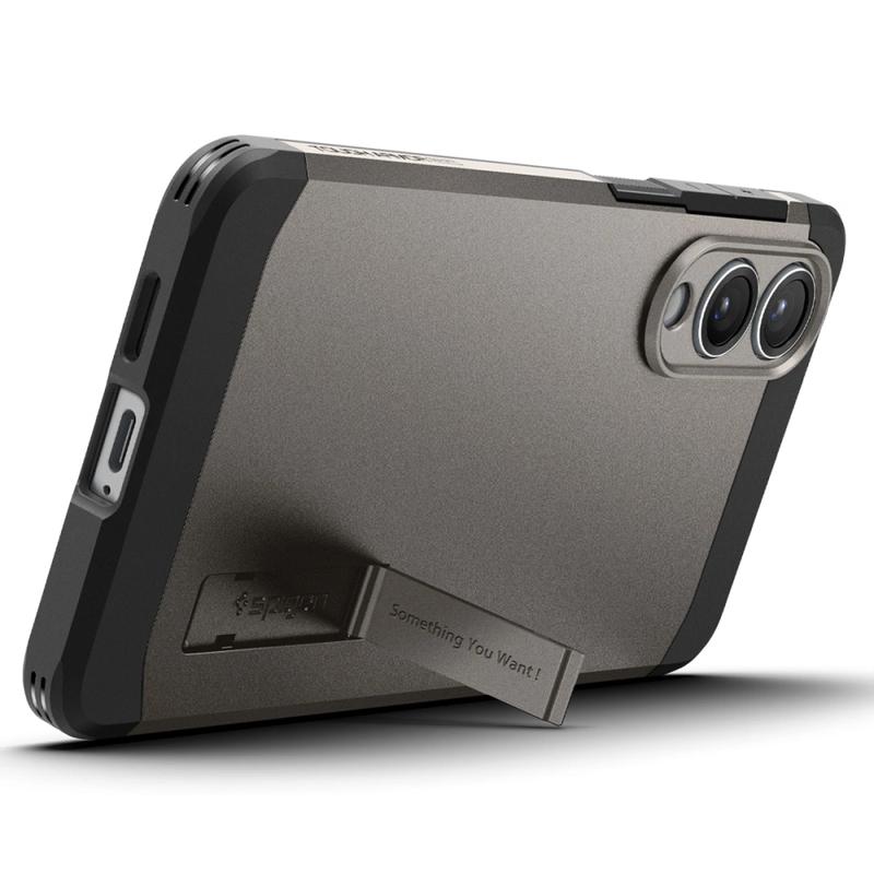 - Spigen Tough Armor Mag-hoes is gemaakt van TPU en plastic