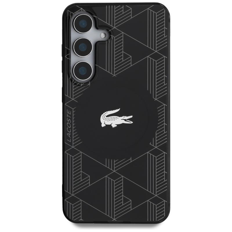 Lacoste Monogram met Zilveren Krokodil Logo Hoesje voor Samsung Galaxy S25 - MagSafe Compatibel