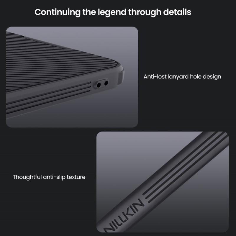 - Deze buitengewone Nillkin CamShield Prop hybride hoes is gemaakt van plastic en TPU-materialen
