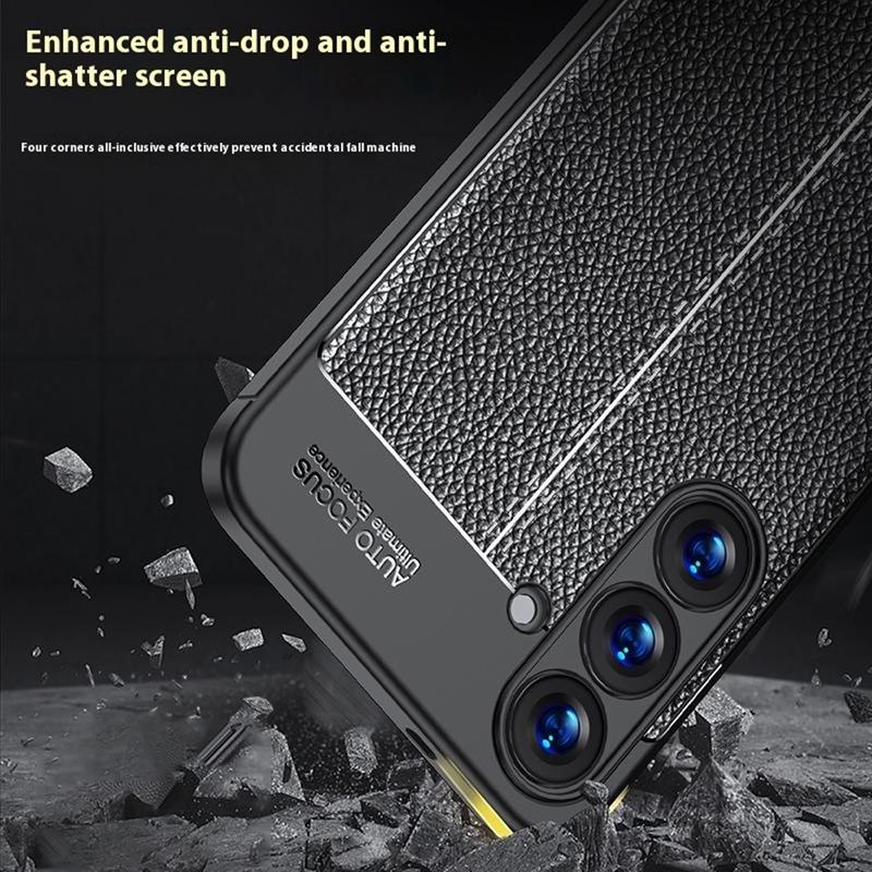 Het flexibele materiaal absorbeert schokken en beschermt je Samsung Galaxy S25 tegen deuken en vallen. Bovendien geeft de textuur op de achterkant het een stijlvolle uitstraling, waardoor je smartphone opvalt.