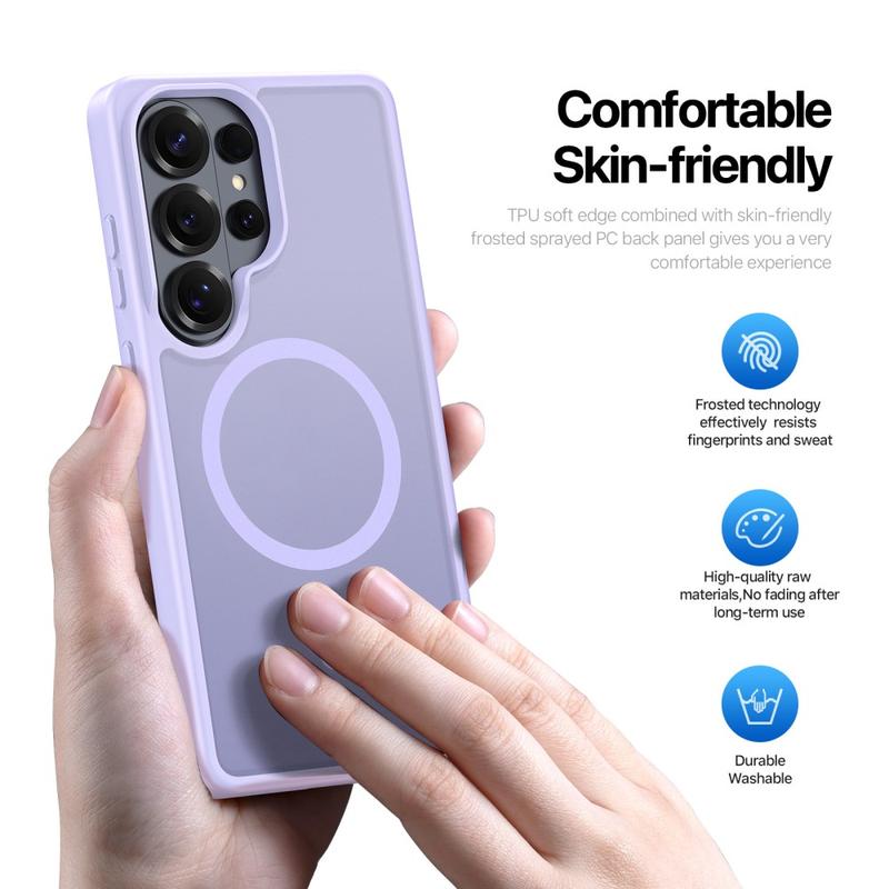 Bescherm je Samsung Galaxy S26 Ultra met een slanke, matte hoes die je direct op MagSafe-opladers en -accessoires kunt klikken. De Yind-serie combineert een krasbestendige pc-achterkant met schokabsorberende TPU-randen en een nauwkeurig uitgelijnde magnetische ring, voor kabelvrije voeding en allround bescherming tegen vallen zonder omvangrijke zakken.