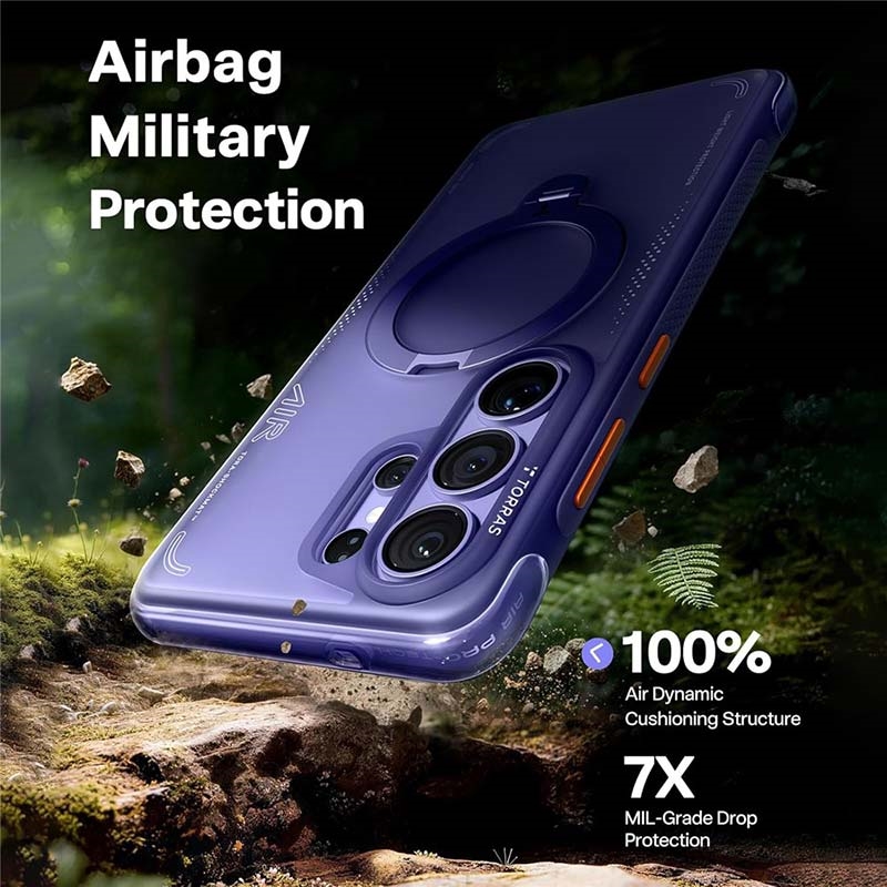 De Torras Ostand Q3 Air MagSafe Case voor Samsung Galaxy S26 Ultra combineert moderne esthetiek met geavanceerde bescherming. Hij is gemaakt van hoogwaardige TPU- en PC-materialen en biedt een slank, stijlvol profiel met een veilige en comfortabele grip.