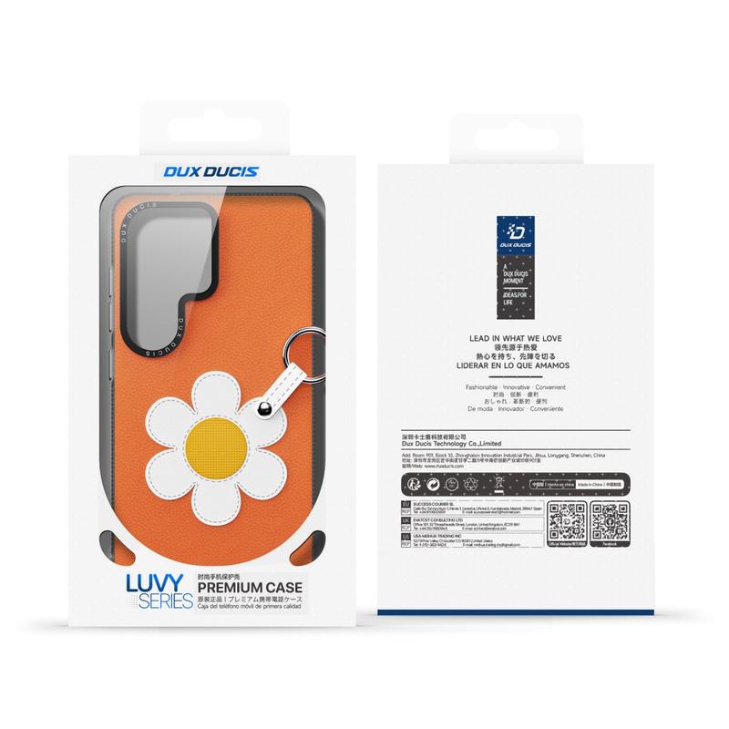 Samsung Galaxy S26 Ultra Dux Ducis Luvy hoesje met vingerring/handband - Oranje / Madeliefje