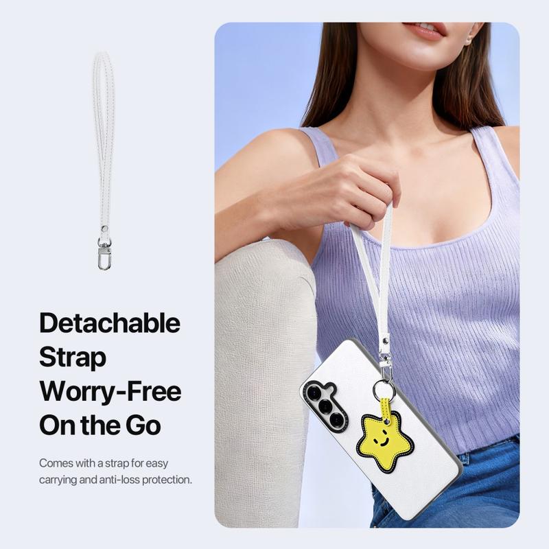 Er wordt een afneembare riem meegeleverd voor gemakkelijk dragen tijdens het reizen, woon-werkverkeer of dagelijkse activiteiten. Het biedt extra beveiliging tegen verlies en geeft je Samsung Galaxy S26+ een modieus accessoire tintje.