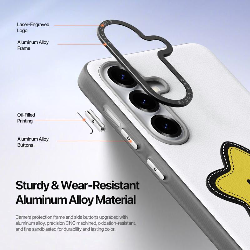 Het camerabeveiligingsframe en de zijknoppen zijn gemaakt van aluminiumlegering, nauwkeurig CNC-bewerkt en afgewerkt met fijn zandstralen. Dit zorgt voor langdurige kleur, duurzaamheid en een premium gevoel, versterkt met subtiele lasergegraveerde details.