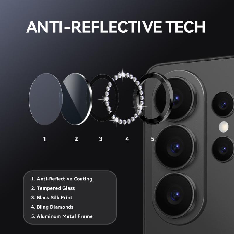 Voeg glans en bescherming toe aan je Samsung Galaxy S26 Ultra met de NORTHJO Camera Lens Protector. Ontworpen met glinsterende steentjes en precisiegeslepen gehard glas, houdt het je cameralens veilig tegen krassen, stof en stoten terwijl het een vleugje elegantie en luxe toevoegt.