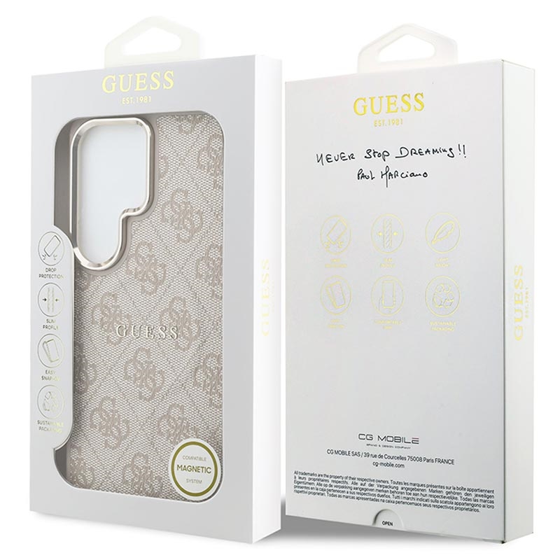 Guess 4G Gold Frame MagSafe-hoesje voor Samsung Galaxy S26 Ultra - dunne beschermende achterkant, polyurethaan, ondersteuning voor draadloos opladen