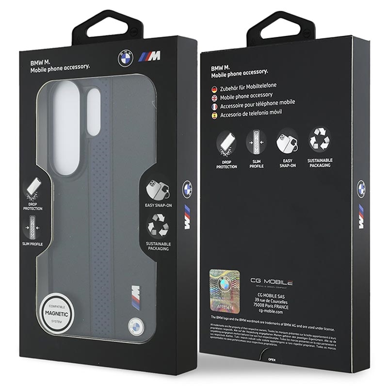 Verfraai uw Samsung Galaxy S26 Ultra met de magnetische hoes met geperforeerde strepen en metalen logo van BMW M, ontworpen voor liefhebbers van sportieve luxe en hoogwaardige details. Deze hoes met elegant geperforeerd strepenontwerp en metalen BMW-logo combineert een op auto's geïnspireerde esthetiek met praktische bescherming voor dagelijks gebruik. Hij is gemaakt van hoogwaardig PU-materiaal en biedt een verfijnde afwerking, een stevige grip en langdurige duurzaamheid in een slank profiel.