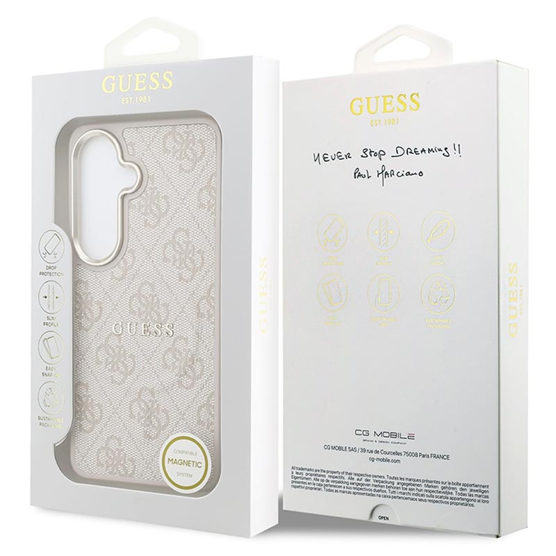 Guess 4G Gold Frame MagSafe-hoesje voor Samsung Galaxy S26+ - dunne beschermende achterkant, polyurethaan, ondersteuning voor draadloos opladen
