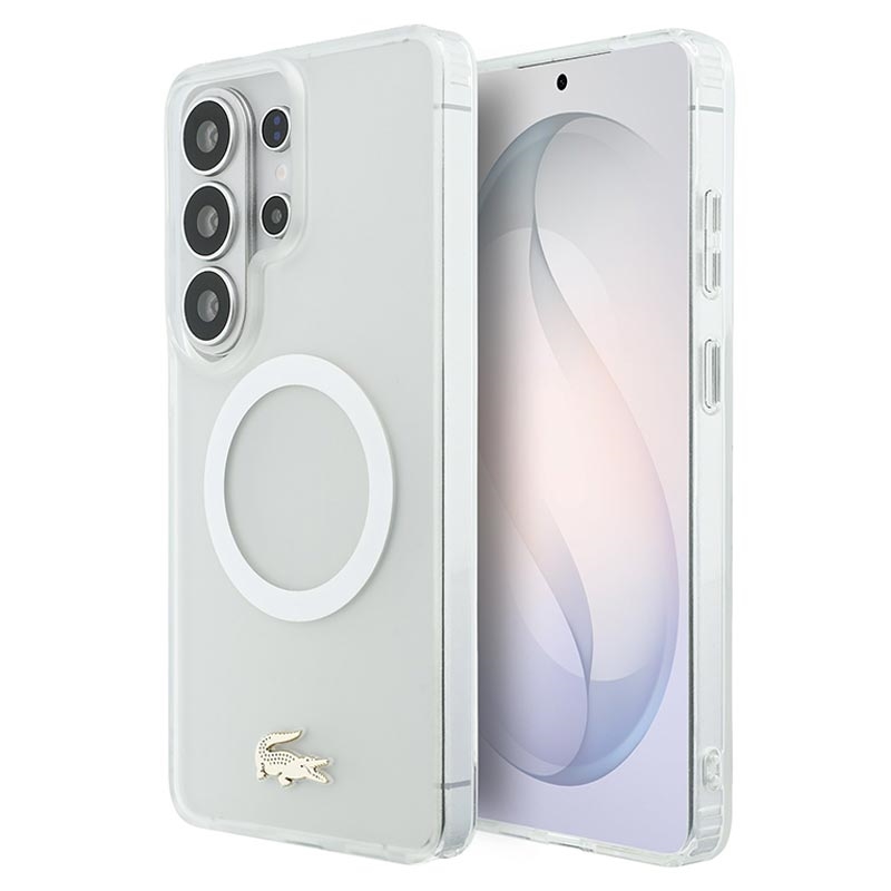 Samsung Galaxy S26 Ultra Lacoste Frosted Finish Gold Logo Hybride Hoesje - MagSafe-compatibel - Wit