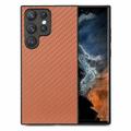 Samsung Galaxy S26 Ultra premium hoesje met koolstofvezelstructuur - bruin