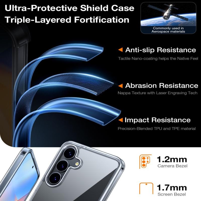 De case is gebouwd met een interne schokabsorberende structuur en een versterkte TPU bumper, die de kracht van vallen en stoten vermindert. Geïntegreerde luchtkussenzones bieden extra bescherming voor dagelijks gebruik zonder onnodige bulk toe te voegen.