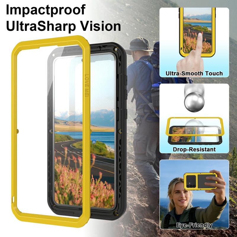 De Love Mei serie is geïnspireerd door militaire en industriële techniek, waarbij gebruik wordt gemaakt van meerlaagse bescherming met metalen frames en siliconen demping - een structuur die bestand is tegen vallen van meer dan 2 meter met behoud van touchscreen gevoeligheid.