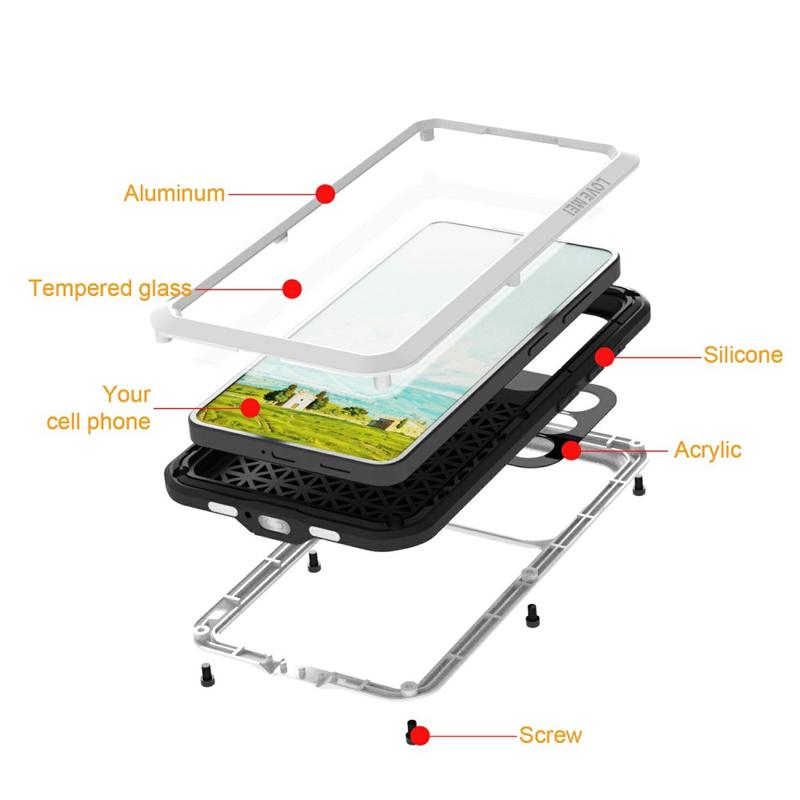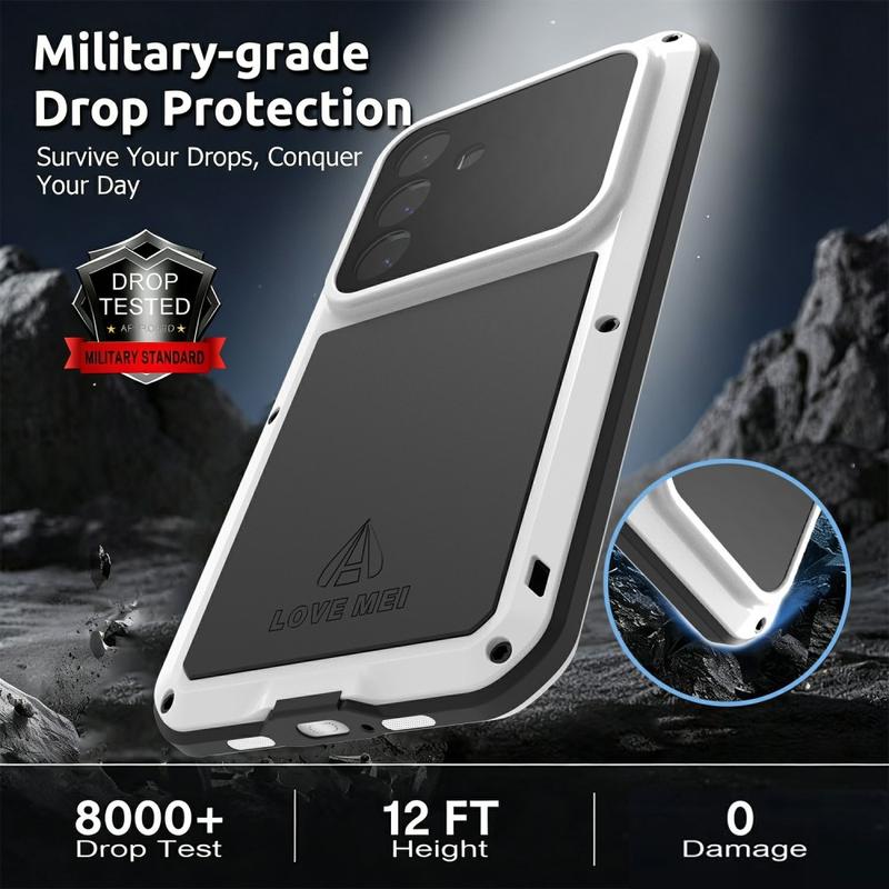 De Love Mei serie is geïnspireerd door militaire en industriële techniek, waarbij gebruik wordt gemaakt van meerlaagse bescherming met metalen frames en siliconen demping - een structuur die bestand is tegen vallen van meer dan 2 meter met behoud van touchscreen gevoeligheid.