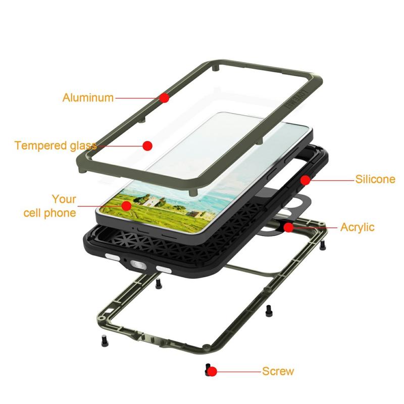 - Schroefslotontwerp - Versterkt met veilige schroefslothoeken die de hoes stevig afsluiten, zodat je telefoon beschermd blijft tijdens vallen, schokken en ruw gebruik.
