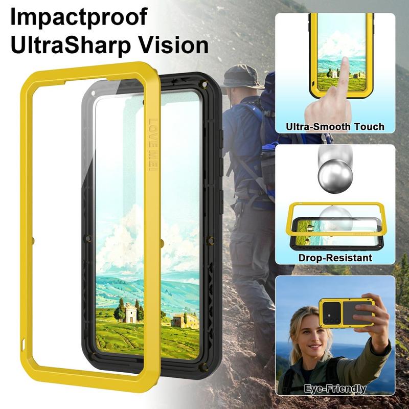 De Love Mei serie is geïnspireerd door militaire en industriële techniek, waarbij gebruik wordt gemaakt van meerlaagse bescherming met metalen frames en siliconen demping - een structuur die bestand is tegen vallen van meer dan 2 meter met behoud van touchscreen gevoeligheid.