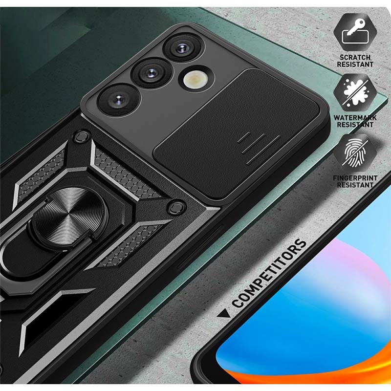 Gemaakt van premium plastic, TPU en metalen materialen, is deze case voor Samsung Galaxy S26 gebouwd om de tand des tijds en bescherming te doorstaan. Met meerdere functies beschermt het perfect je Samsung Galaxy S26 en maakt het ook comfortabel om te gebruiken en te kijken dankzij de roterende ring aan de achterkant.