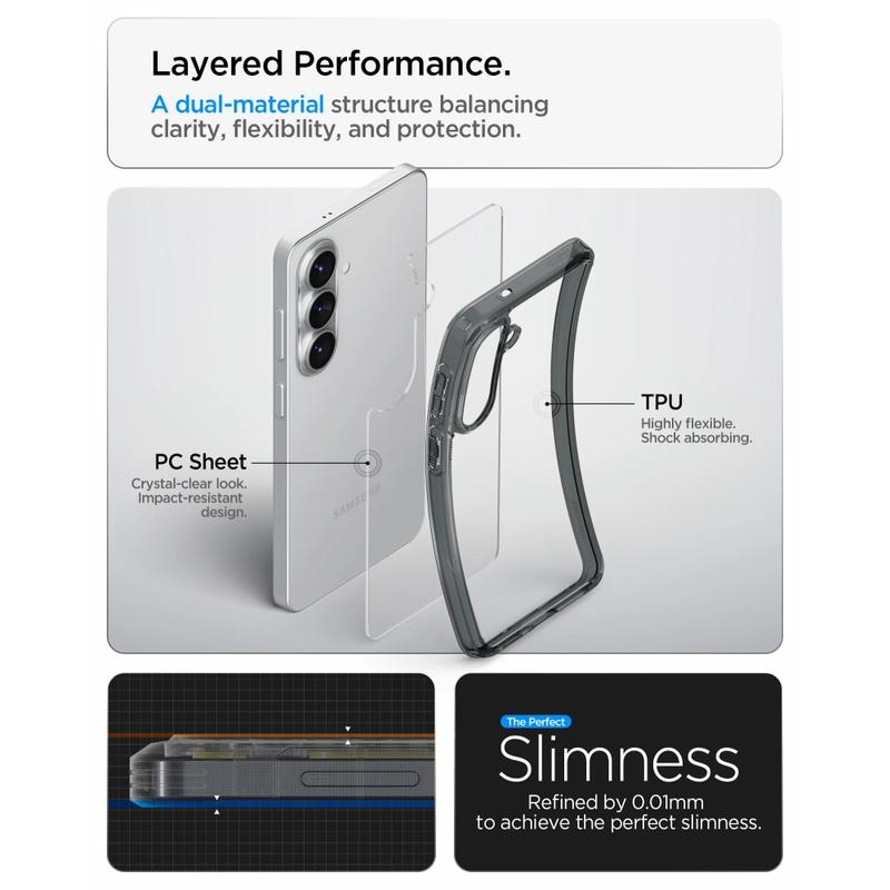 Het laat perfect het unieke uiterlijk van uw Samsung Galaxy S26 zien en beschermt het tegen alledaagse stoten, krassen en andere soorten schade. Het voegt ook minimale massa en gewicht toe aan uw apparaat en verbetert uw grip.