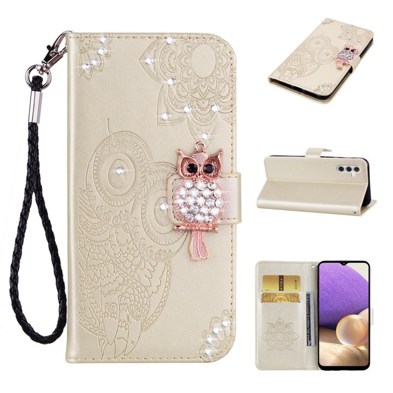 Samsung Galaxy S26 Uil Strass Portemonnee Hoesje - Goud