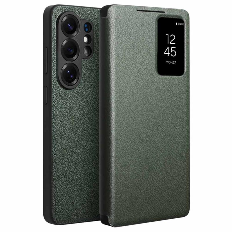 Samsung Galaxy S26 Ultra Qialino Smart View Leren Flip Hoesje - Groen