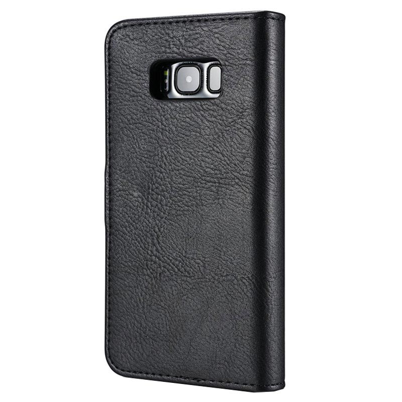 DG.Ming 2-in-1 lederen portemonnee voor Samsung Galaxy S8+ is een veelzijdige case die bescherming biedt en functionaliteit toevoegt. De portemonnee bestaat uit twee afzonderlijke hoesjes die bij elkaar worden gehouden door magneten: een zachte, gespleten leren folio met vakken en een hoes met kliksluiting voor de Galaxy S8. Dankzij de magnetische sluitingen kan hij worden omgevormd tot een standaard voor het gemakkelijk bekijken van media.