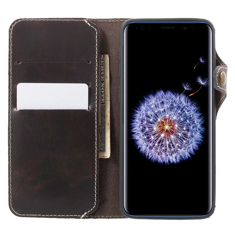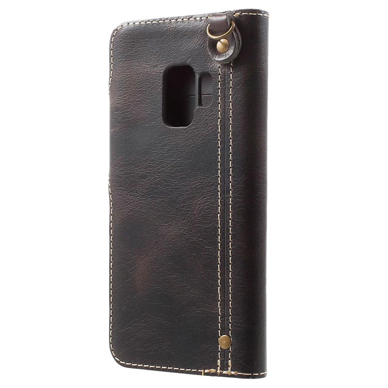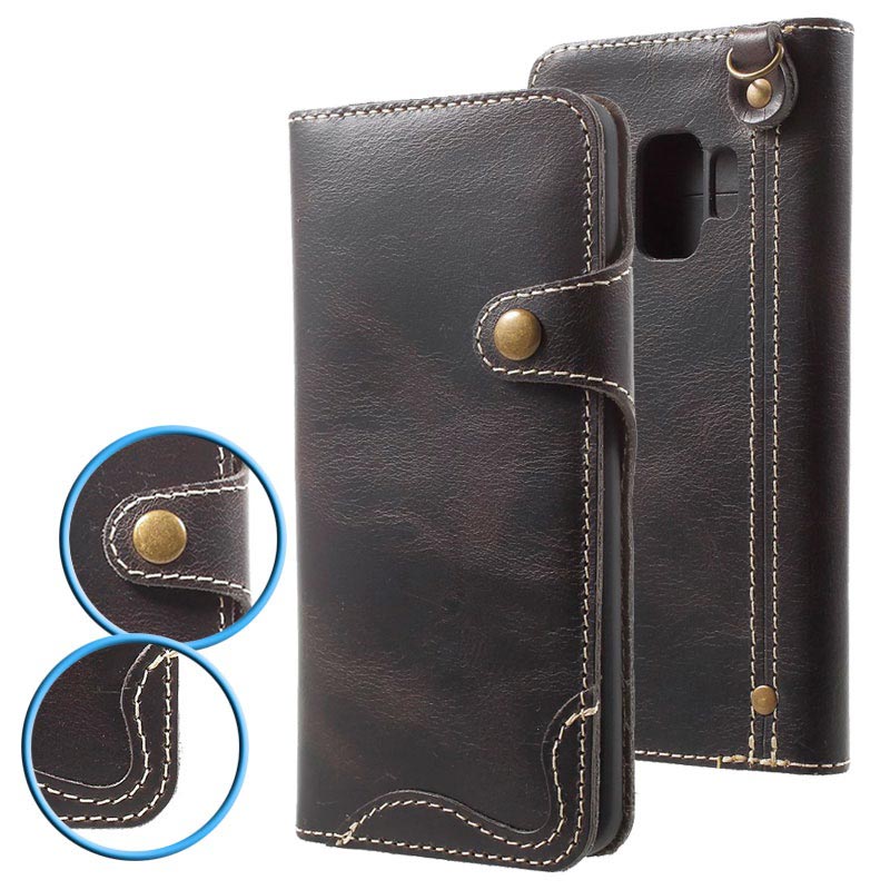 - Een flipcase in retrostijl voor Galaxy S9 gemaakt van echt leer