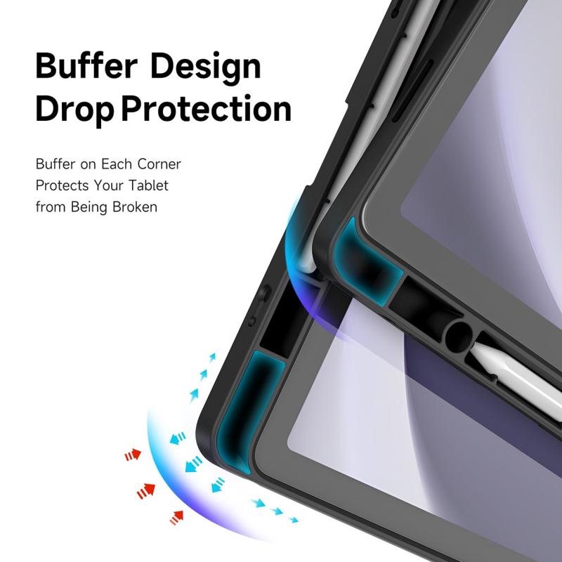 Ultraslank: De slanke, lichtgewicht en zacht aanvoelende voorkant is gemaakt van eersteklas PU leer, het krasvrije interieur biedt geweldige bescherming en het TPU frame + PC achterkant maakt je tablet stabieler.