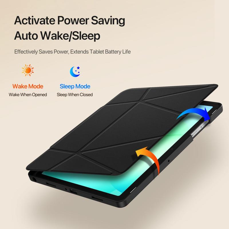 Maak van je Samsung Galaxy Tab A11+ een echt veelzijdig werkstation. De DUX DUCIS Vers Series hoes tilt de tablet met ongeveer 4,5 cm op zodat je hem zonder spanning kunt bekijken, beschermt hem tegen de dagelijkse stoten en past in elke tas dankzij de vederlichte constructie. Van binge-watching tot schetsen, deze opvouwbare hoes past zich in enkele seconden aan.