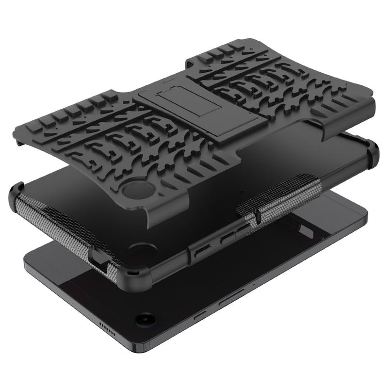 De harde buitenlaag maakt je Samsung Galaxy Tab A9 minder buiggevoelig, terwijl de schokabsorberende binnenlaag hem beschermt tegen vallen en stoten. Bovendien maakt de ingebouwde standaard comfortabel video kijken op je Samsung Galaxy Tab A9 mogelijk.