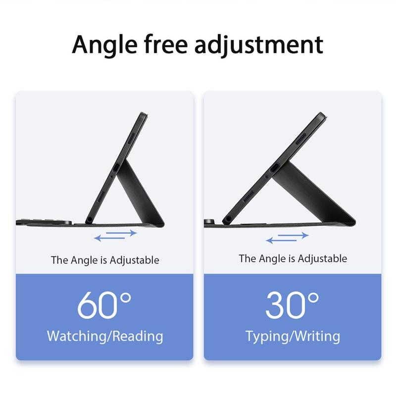 Dankzij het slanke en lichtgewicht ontwerp kunt u deze fantastische Dux Ducis Bluetooth-toetsenbordhoes voor de Samsung Galaxy Tab A9+ gemakkelijk overal mee naartoe nemen. 2-in-1, Bluetooth-toetsenbord en een tablethoes. Het toetsenbord is bevestigd met een dubbele magneet en is zeer stabiel en beweegt niet snel. Het heeft ook een touchpad met instelbare gevoeligheid en een duurzame knop. Geniet van handsfree ervaring met een koffer als ondersteunende standaard in een paar hoeken.