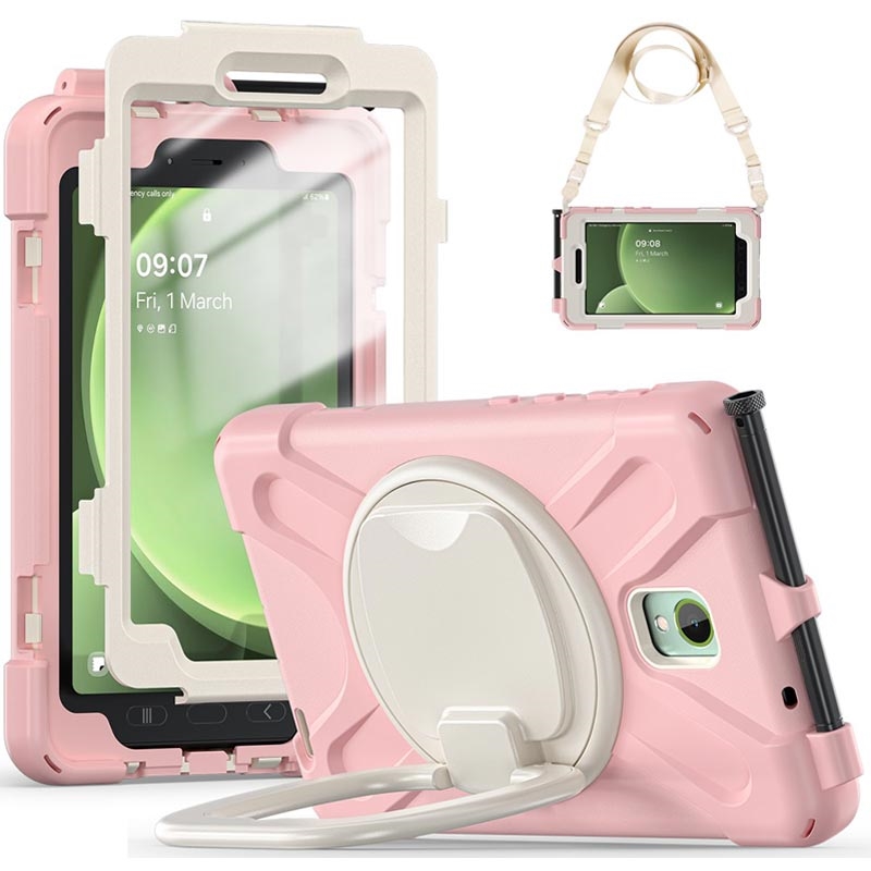 Samsung Galaxy Tab Active5 Heavy Duty 360 Hoesje met Draagriem - Roze / Wit