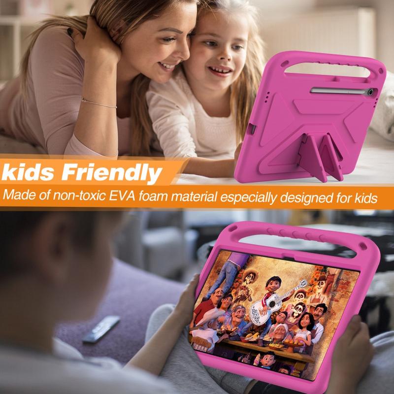 Bescherm je Samsung Galaxy Tab S10 FE+ met dit interessante kinderhoesje. De Samsung Galaxy Tab S10 FE+ schokbestendige hoes voor kinderen is gemaakt van milieuvriendelijk en niet-giftig EVA-materiaal, dus veilig voor kinderen. Deze hoes zorgt voor voldoende bescherming van de tablet en biedt handsfree kijken en gemakkelijke toegang tot alle functies.